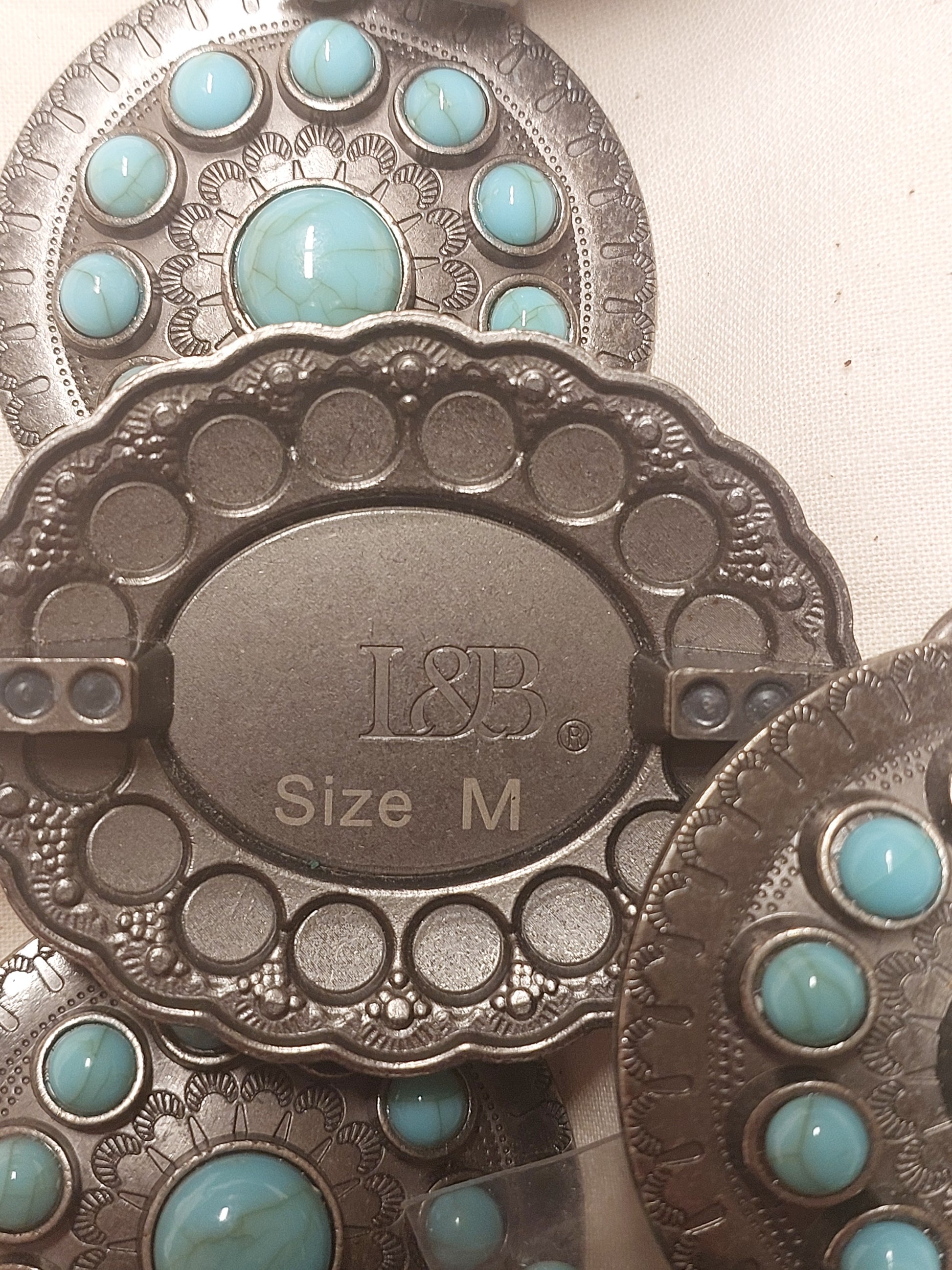 Vintage Style Faux Turquoise Concho Link Belt – Silver Tone Statement Belt (Size M)