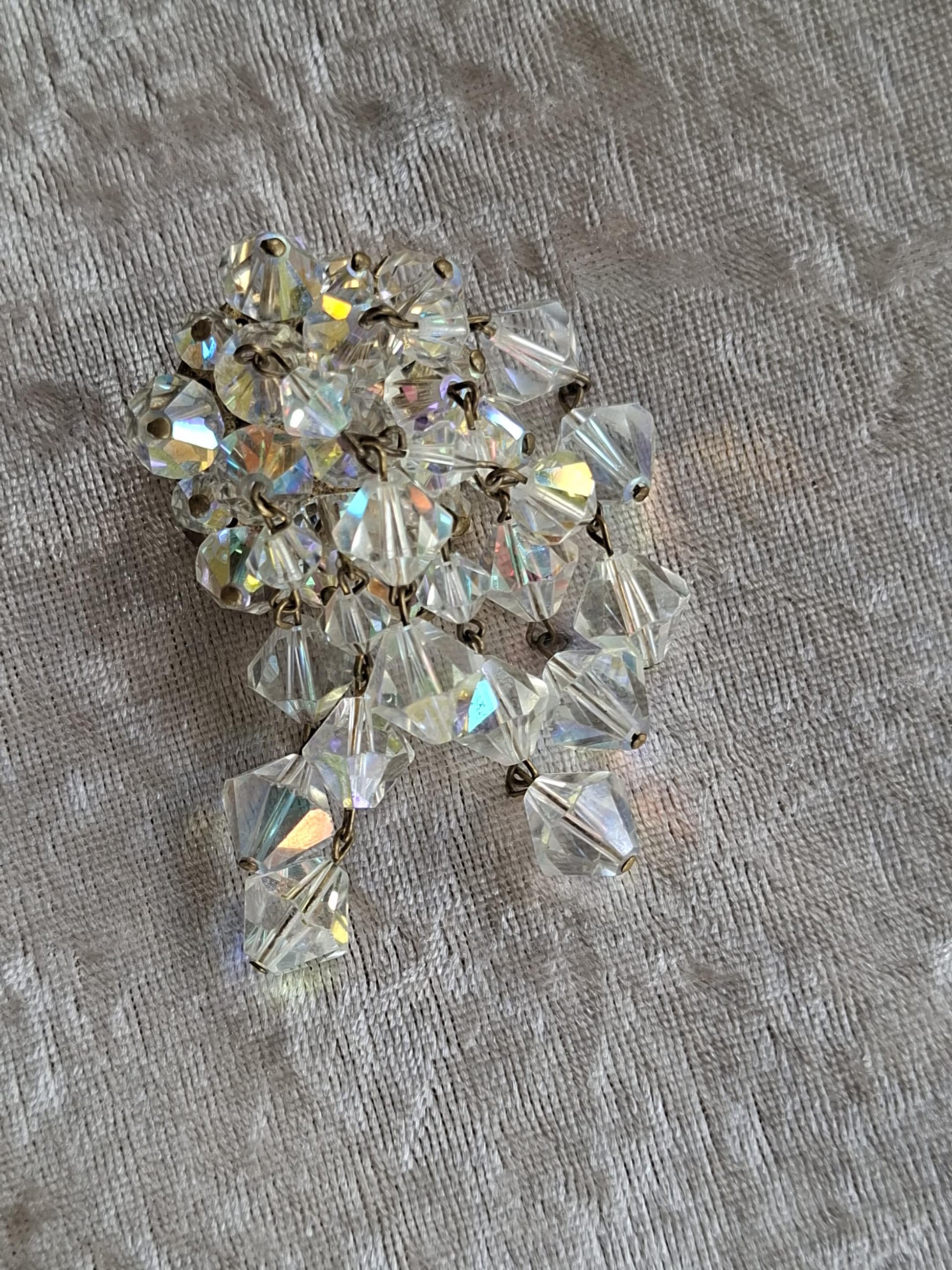Vintage Aurora Borealis Crystal Waterfall Brooch – 1950s/60s Sparkling Dangle Cluster Pin