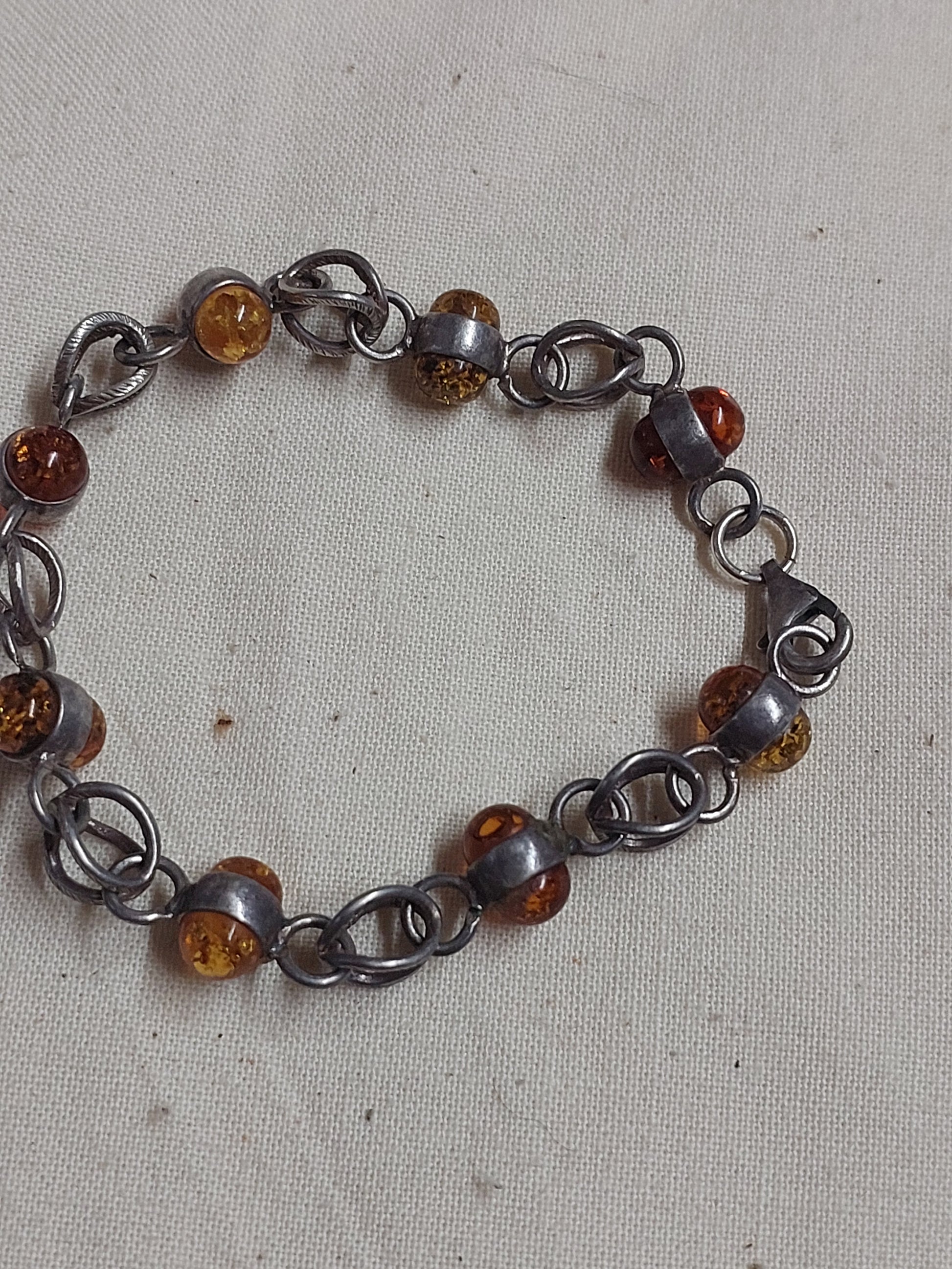 A beautiful vintage Baltic amber bracelet, featuring warm honey and cognac amber cabochons set in solid sterling silver (925).