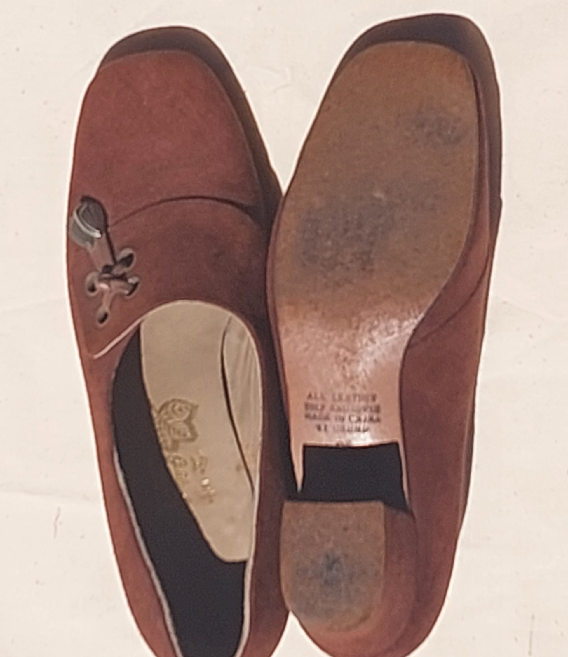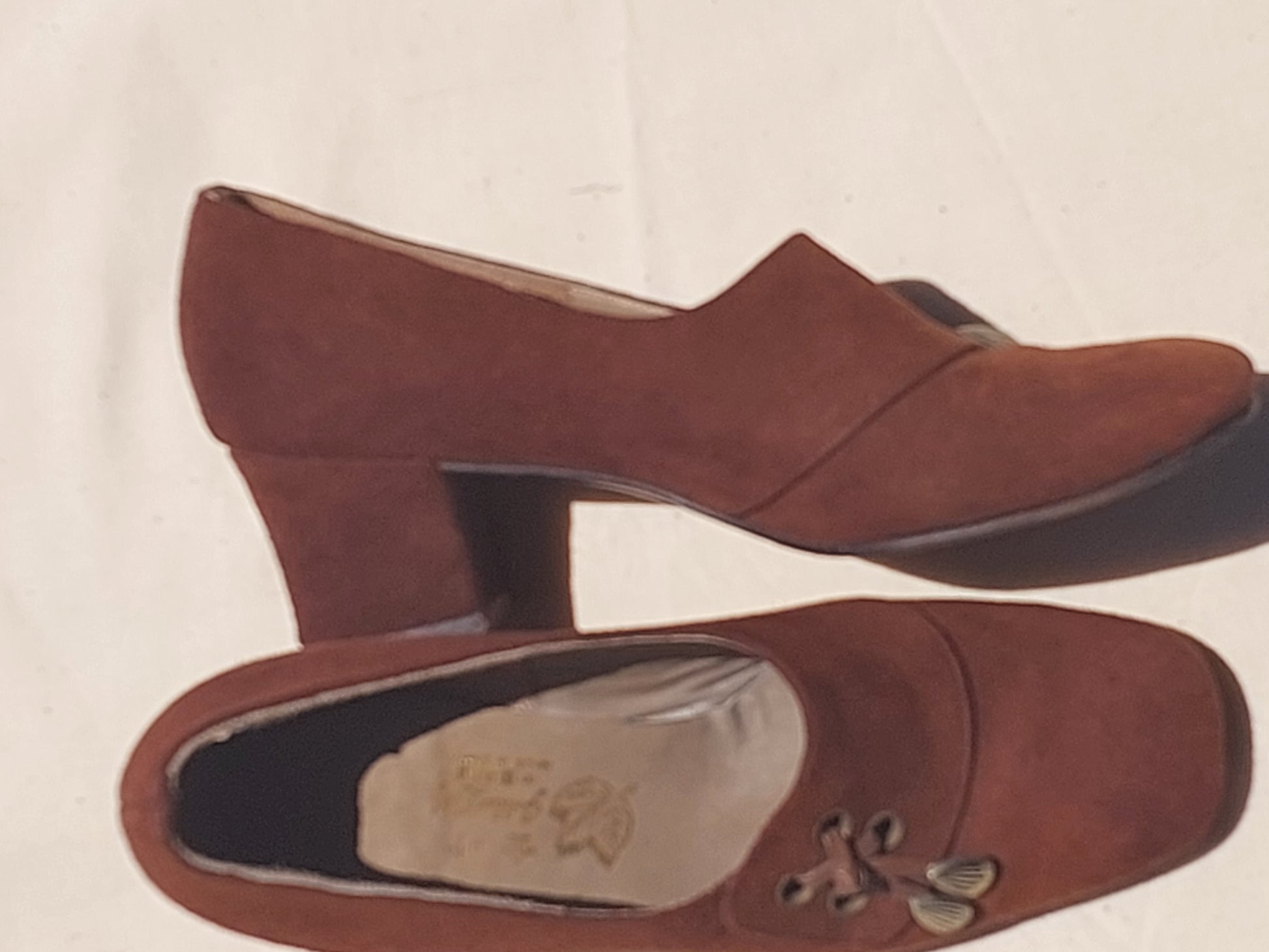 Step into effortless retro charm with these beautiful vintage-inspired suede heels. The warm rust-brown tone, soft suede texture and unique lace-toggle detail capture that perfect 70s boho feel — feminine, earthy and timeless.